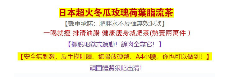 【日本冬瓜玫瑰荷葉脂流茶】台灣指定官網,一杯漢方減肥茶,瘦身茶,清腸消脂茶帶走你的卡路里,每日幾杯輕鬆甩掉肉肉,堅持2-3個週期,擁有苗條曲線,展現你的美。反手摸肚臍、鎖骨放硬幣、A4小腰,你也可以!脂流茶帶你狠鏟肥肉、立馬成為型男美女!日本漢方脂流茶是真正有效的瘦身清腸消脂茶,提高新陳代謝,搶救餐後熱量無極限,產後媽媽也可安全使用。 減肥茶想要冷飲or熱飲隨意切換,沖泡式即溶茶飲更健康。